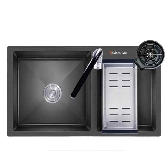 Glam Gas new sink has everything you need to clean up quickly and easily, even in a small space. It has a built-in glass washer, shower, and pull-out faucet, so you can save time and water.